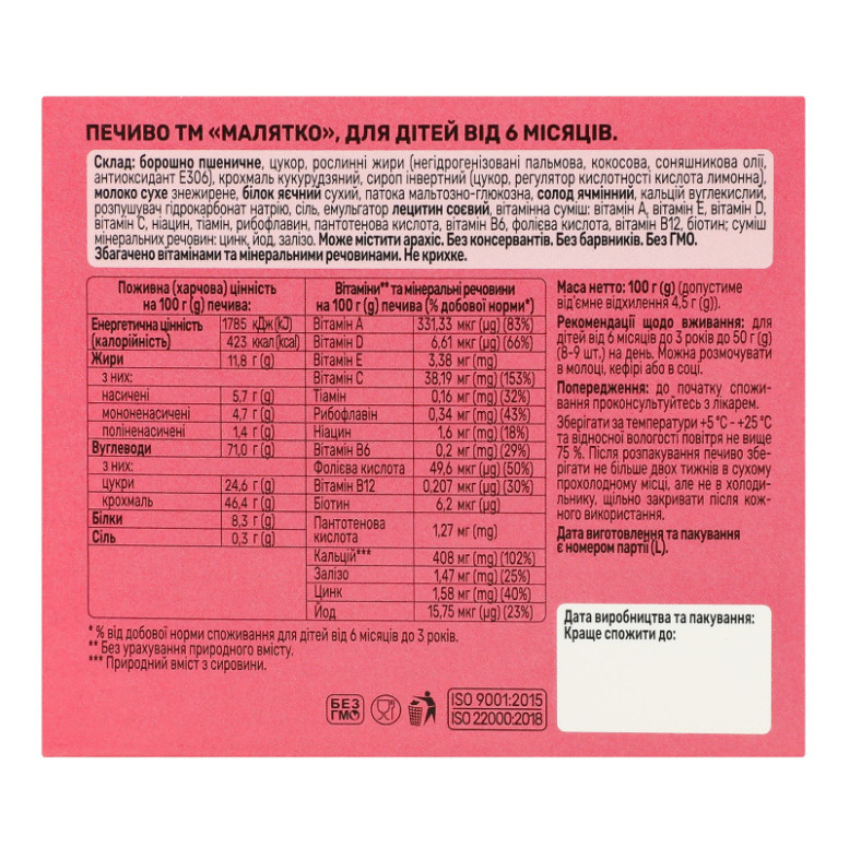 Печиво для дітей від 6міс Класичне Малятко к/у 100г