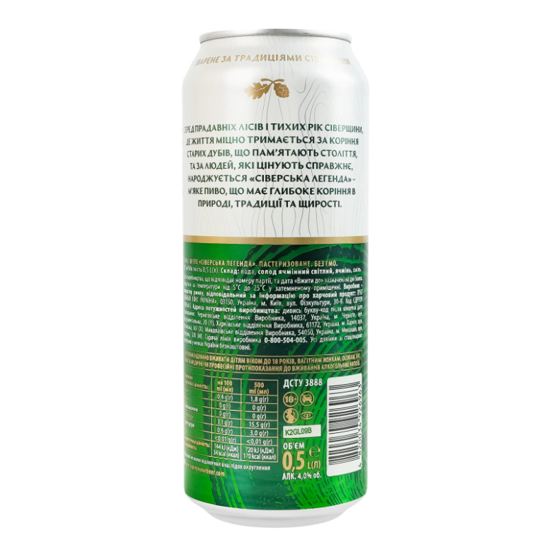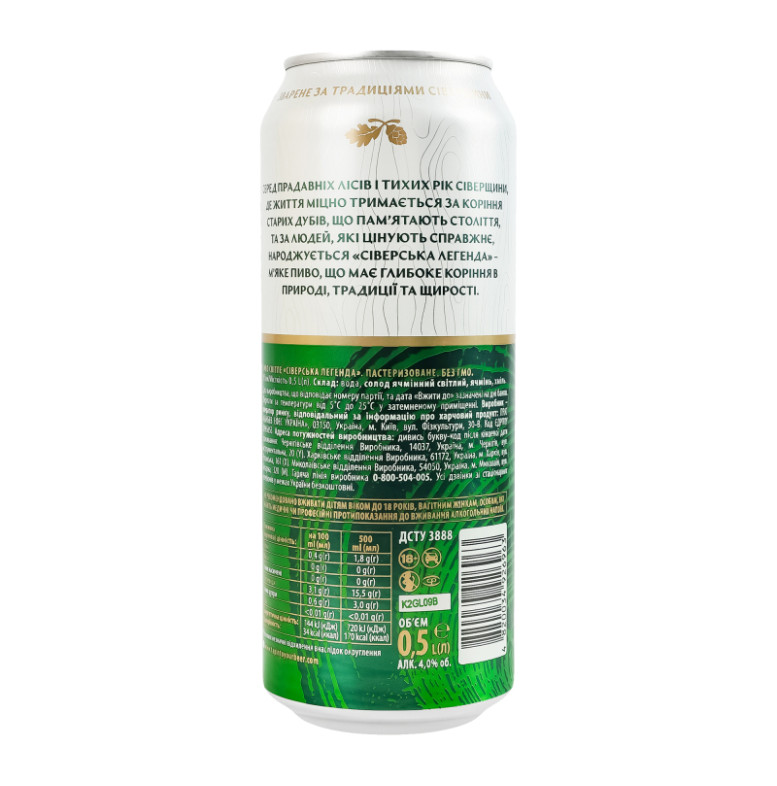 Пиво 0.5л 4% світле пастеризоване Сіверська легенда з/б