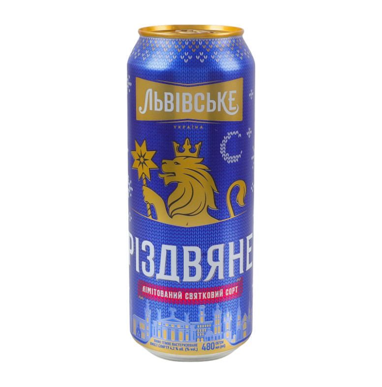 Пиво 480мл 4.2% темне пастеризоване Різдвяне Львівське з/б