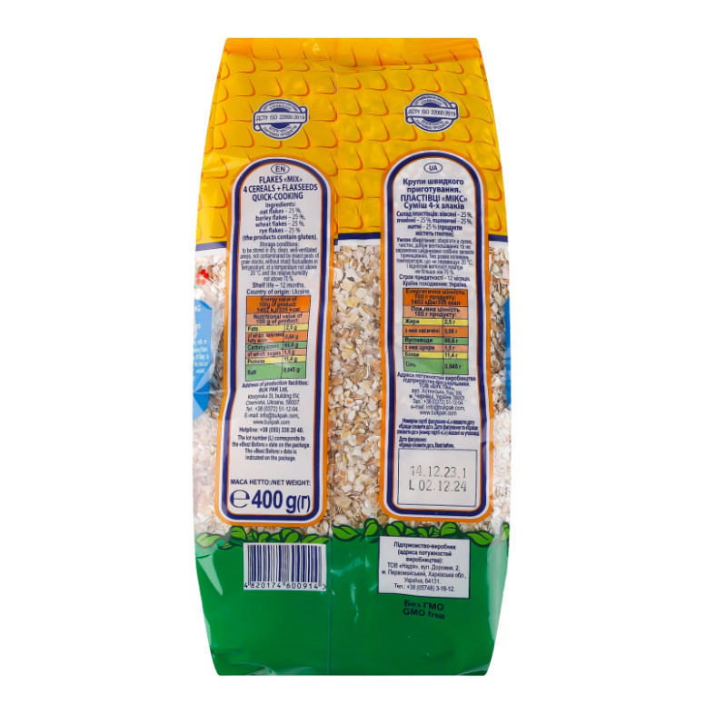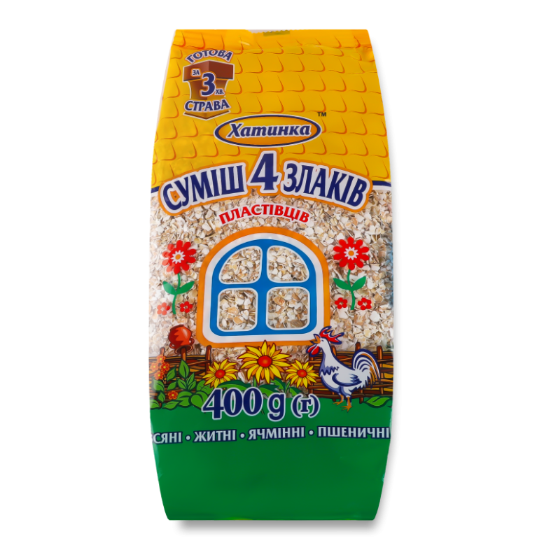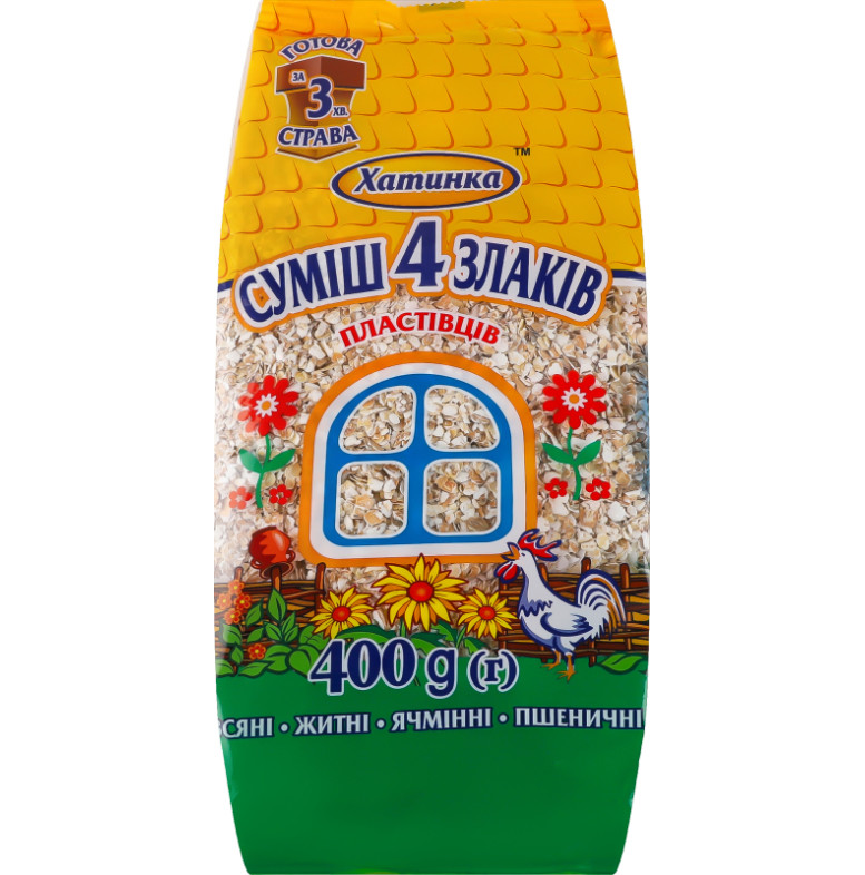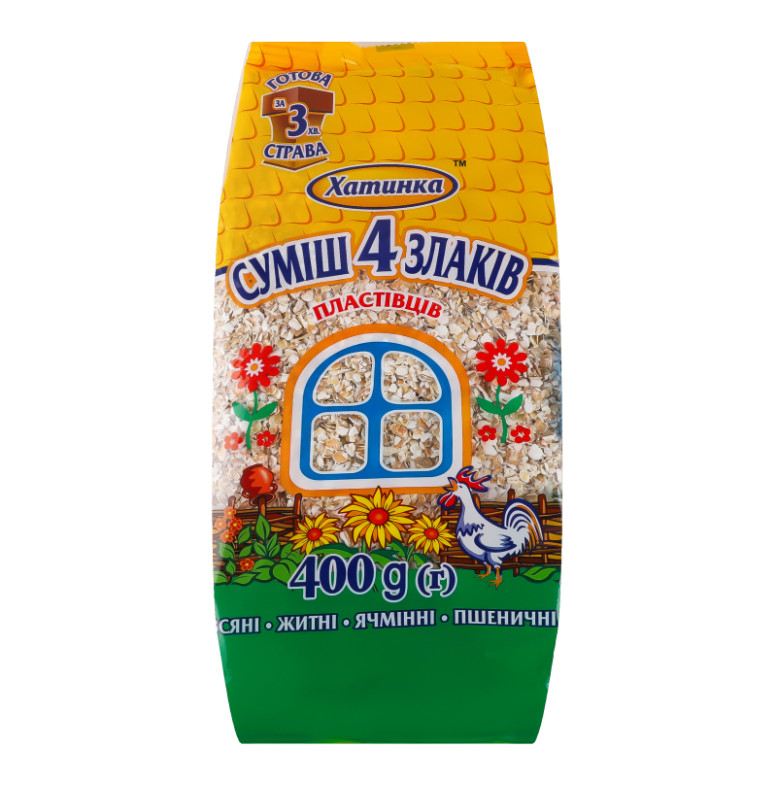 Пластівці Хатинка мікс 4-х злаків 400г