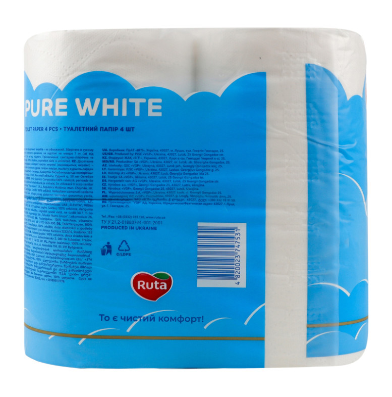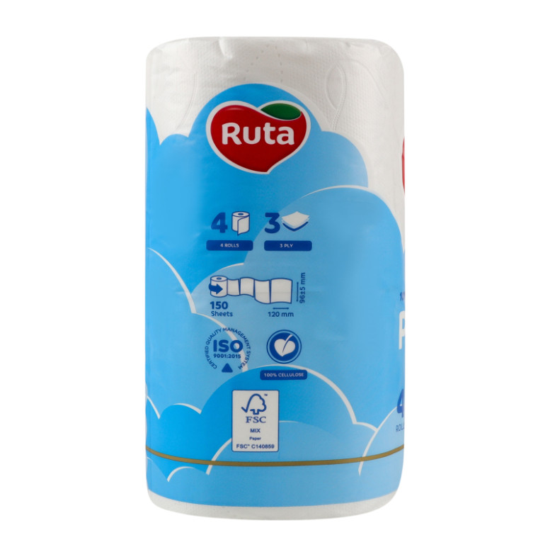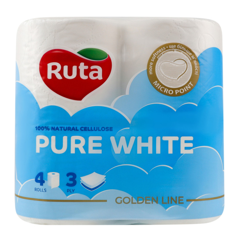 Папір туалетний 3-х шаровий 150 листів Pure white Golden line Ruta 4шт