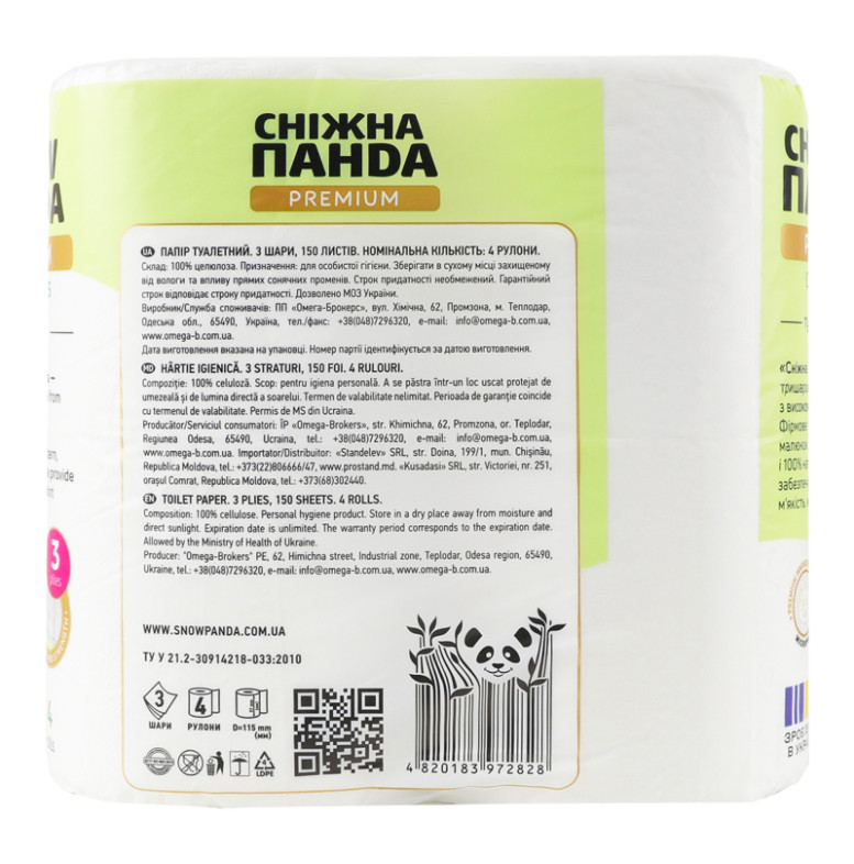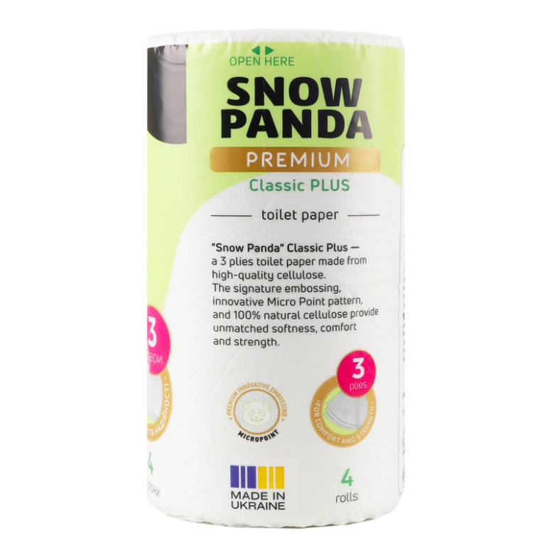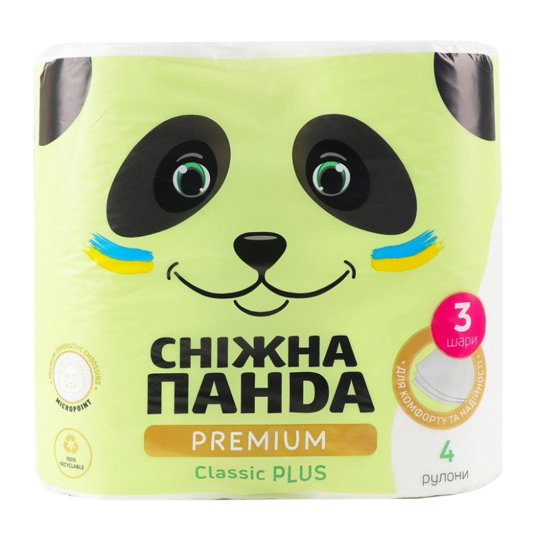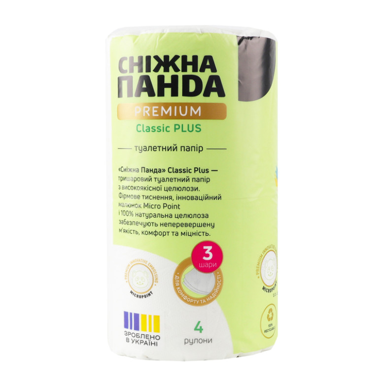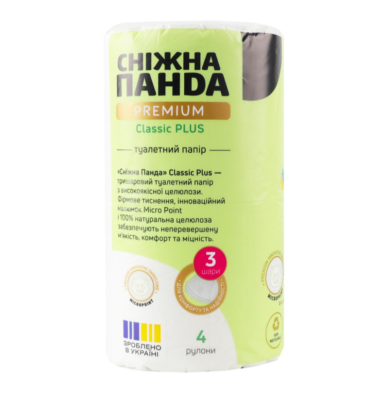 Папір туалетний 3-х шаровий Classic Plus Premium Сніжна панда 4шт
