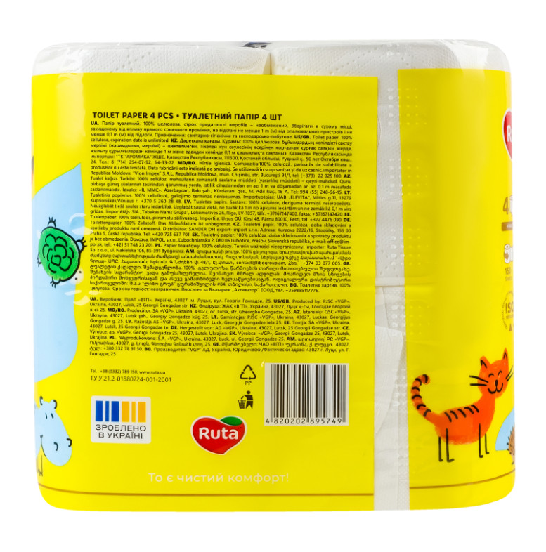 Папір туалетний 2-х шаровий 150 листів Ruta 4шт