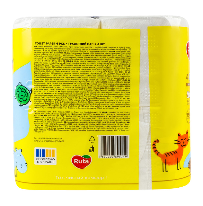Папір туалетний 2-х шаровий 150 листів Golden line Ruta 4шт