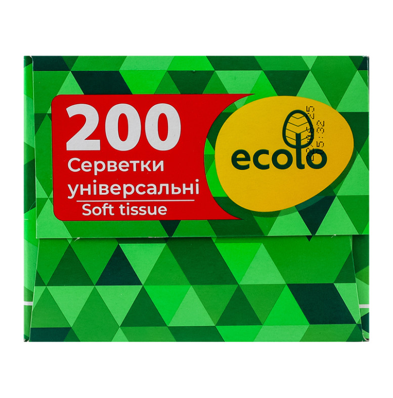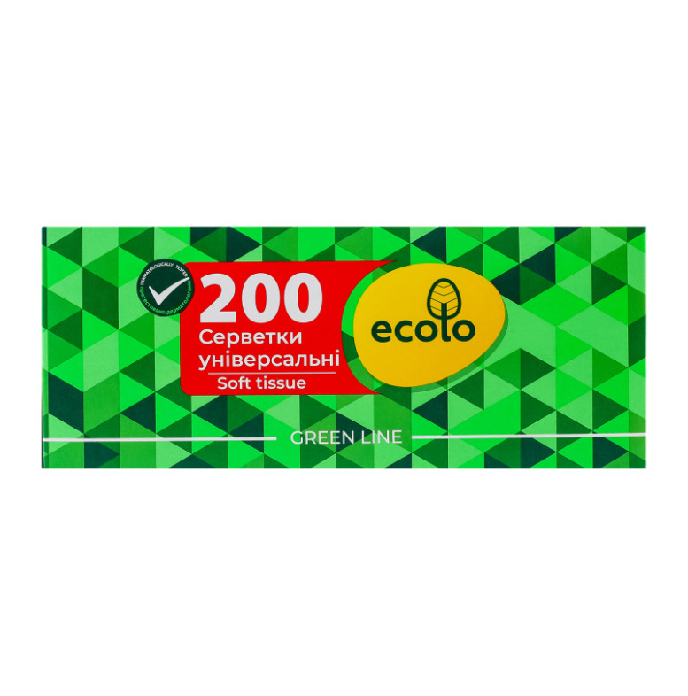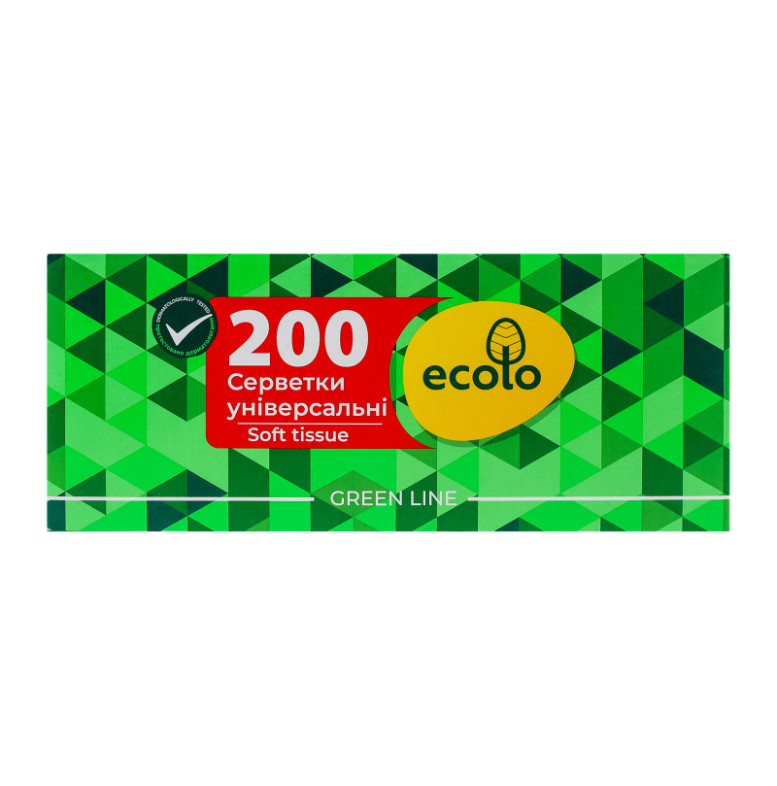 Серветки косметичні універсальні 2-х шарові 20х20см Green line Ecolo 200шт
