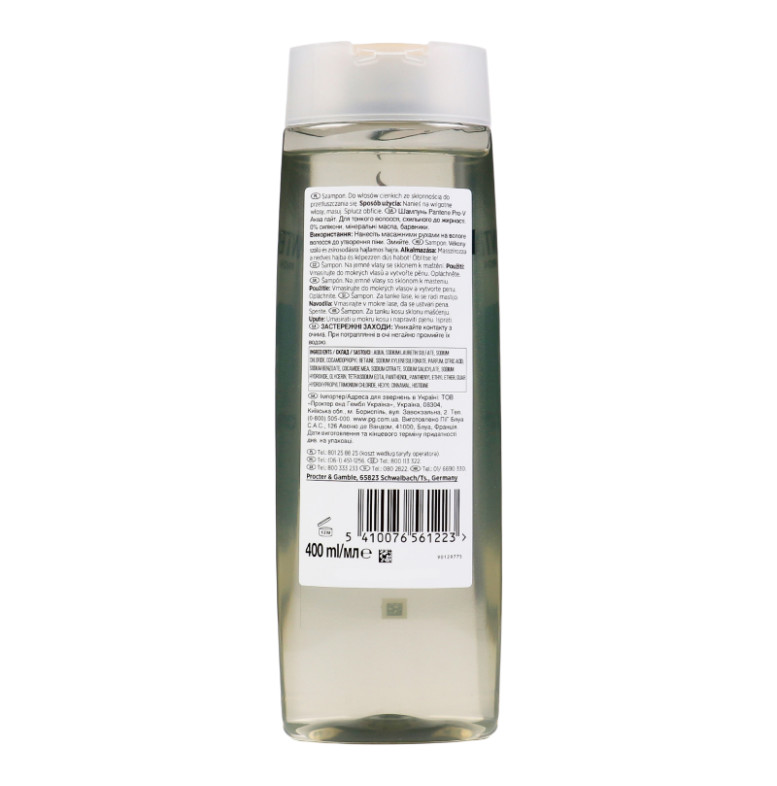 Склад: Вода, натрію лауретсульфат, натрію хлорид, кокамідопропілбетаїн, натрію ксиленсульфонат, віддушка, натрію бензоат лимонної кислоти, кокамід МЕА, натрію цитрат, натрію саліцилат, натрію гідроксид, гліцерин, тетранатрію ЕДТА, пантенол, пантенол етиловий ефір гуару, гідроксипропіл тримоніум хлорид, гексил циннамаль, гістидин