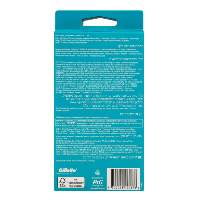 Склад: Змащувальна смужка: ПЕГ-115M, ПЕГ-7M, ПЕГ-100, діоксид кремнію, пентаерітрітіл тетра-ді-трет-бутил гідроксигідроціннамат, трис(ді-трет-бутил)фосфіт, БГТ, гліколь