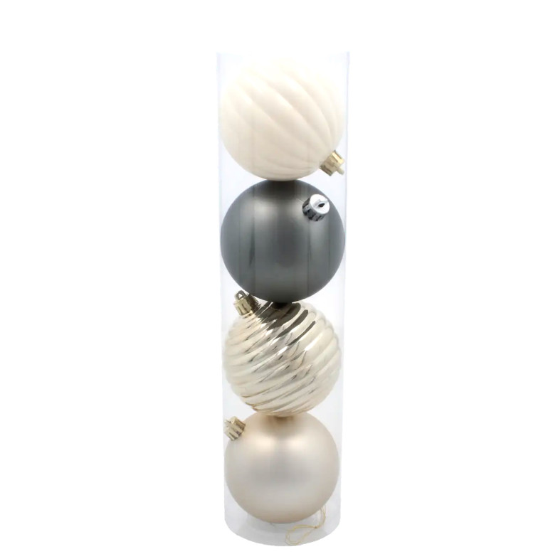 Дизайн: Кульки представлені в міксі кольорів та різних текстур, (матові, з горизонтальним або вертикальним візерунком), що дозволяє створювати різноманітні святкові композиції.