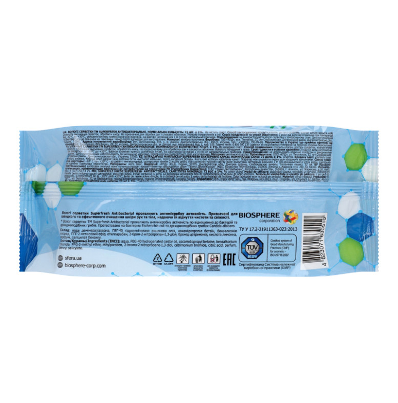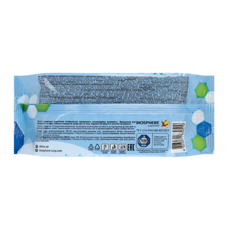 Серветки вологі універсальні Антибактеріальні Superfresh 72шт