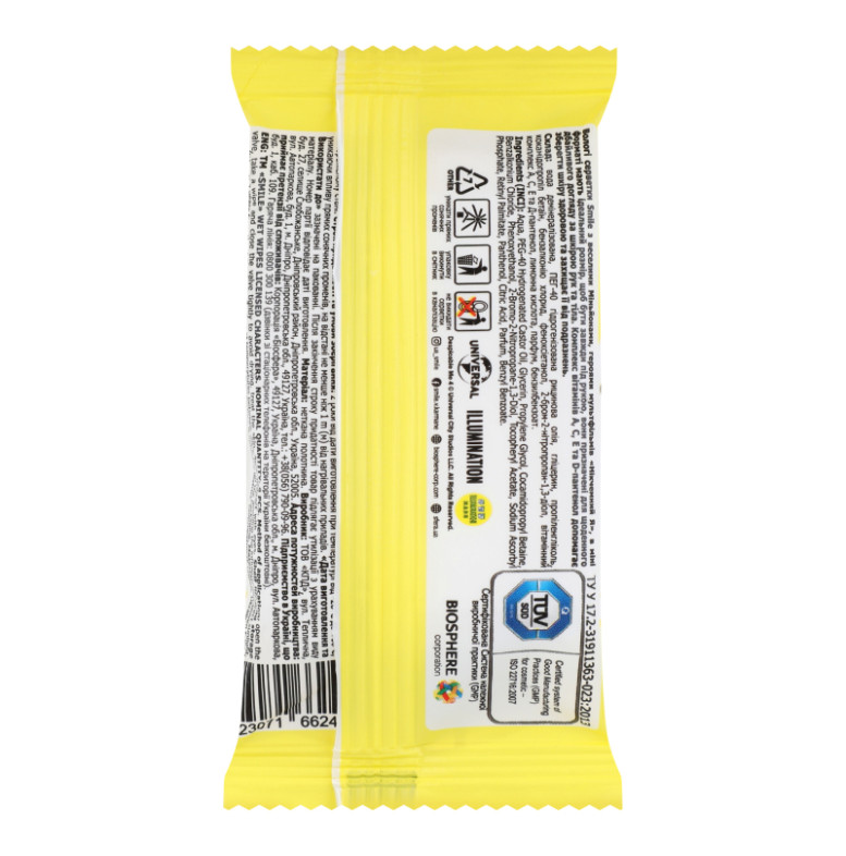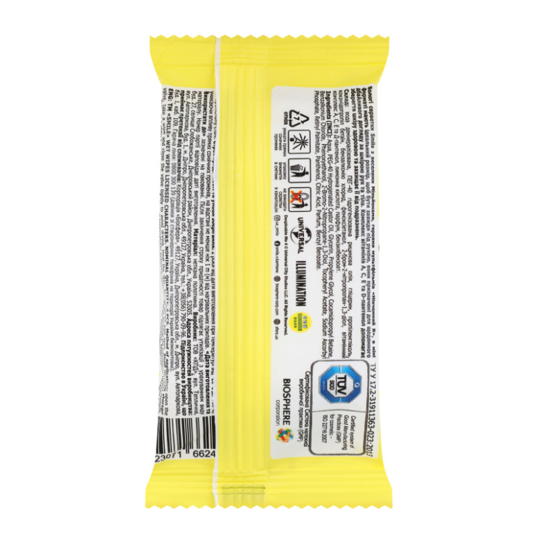 Застереження/міри безпеки (ua)Уникати потрапляння в очі. При виявленні чутливості до компонентів припинити використання. Не використовувати вологі серветки у замороженому стані. Зберігати на відстані не менше ніж 1м від нагрівальних приладів