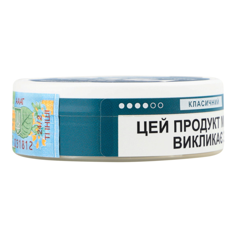 | Склад (укр.) | Вода, наповнювач: мікрокристалічна целюлоза, сіль: хлорид натрію, нікотин, підсолоджувачі: ксиліт, ацесульфам К, ароматизатор, регулятор кислотності: бікарбонат натрію, желюючий агент: альгінат натрію, сальміак: хлорид амонію |