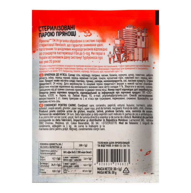 Склад: Сіль, коріандр, паприка, часник, базилік, куркума, цукор, пажитник, цибуля ріпчаста, імбир, перець чорний, перець червоний гострий, томати, мускатний горіх, лавровий лист, кмин