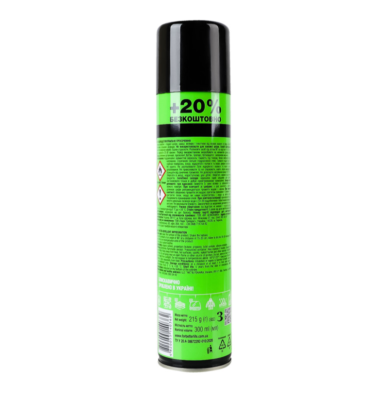Застереження/міри безпеки (ua) | Надзвичайно займистий аерозоль. Ємність під тиском. Може вибухнути під час нагрівання. Спричиняє сильне подразнення очей. Тримати подалі від тепла, гарячих поверхонь, іскор, відкритого полум'я та інших джерел запалювання. Не курити. Не розпилювати біля відкритого полум'я та іншого джерела запалювання. Не проколювати та не спалювати, навіть після використання. Не допускати нагрівання вище 50°C/122°F. Зберігати в місці, недоступному для дітей. Зберігати окремо від харчових продуктів. Вдихання парів шкідливо для здоров'я. Застосовувати тільки в добре провітрюваному приміщенні. Заходи першої допомоги: при вдиханні: вивести із зони впливу та забезпечити доступ свіжого повітря. При контакті зі шкірою: у разі контакту з ураженою ділянкою шкіри рекомендується промити водою з милом. При зоровому контакті: обережно промити очі водою протягом принаймі 15 хвилин. Зняти контактні лінзи, якщо ви ними користуєтесь і якщо це легко зробити. Продовжити промивання очей. При ковтанні/аспірації: прополоскати водою, випити декілька склянок води з 10-20 подрібненими таблетками активованого вугілля. Не викликати блювоту. Звернутися за медичною допомогою у випадку необхідності |