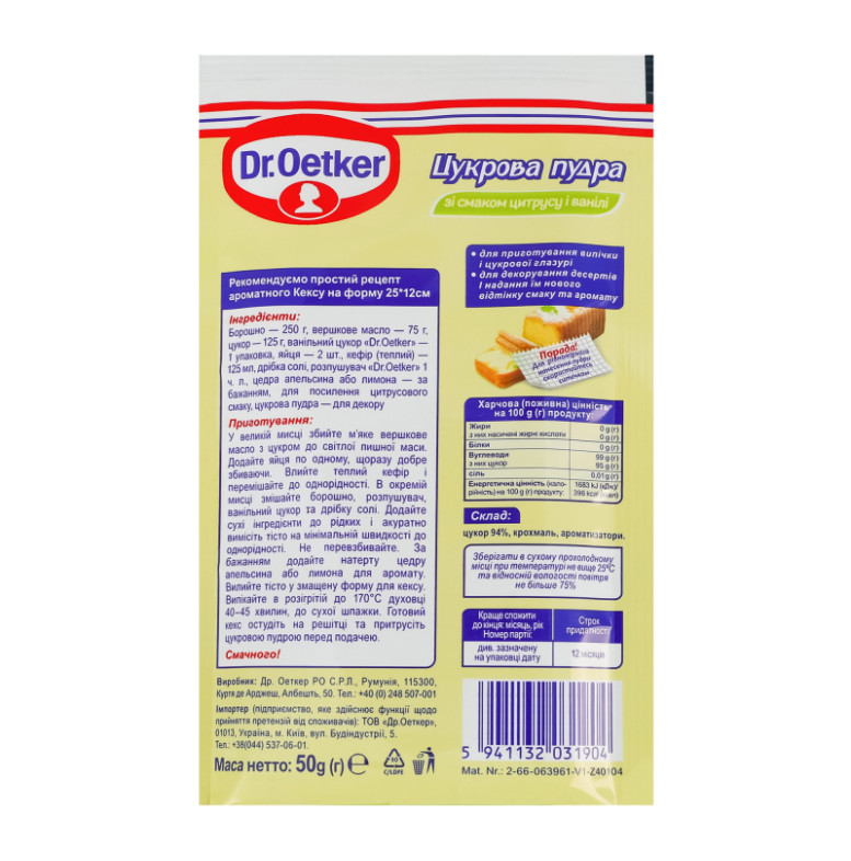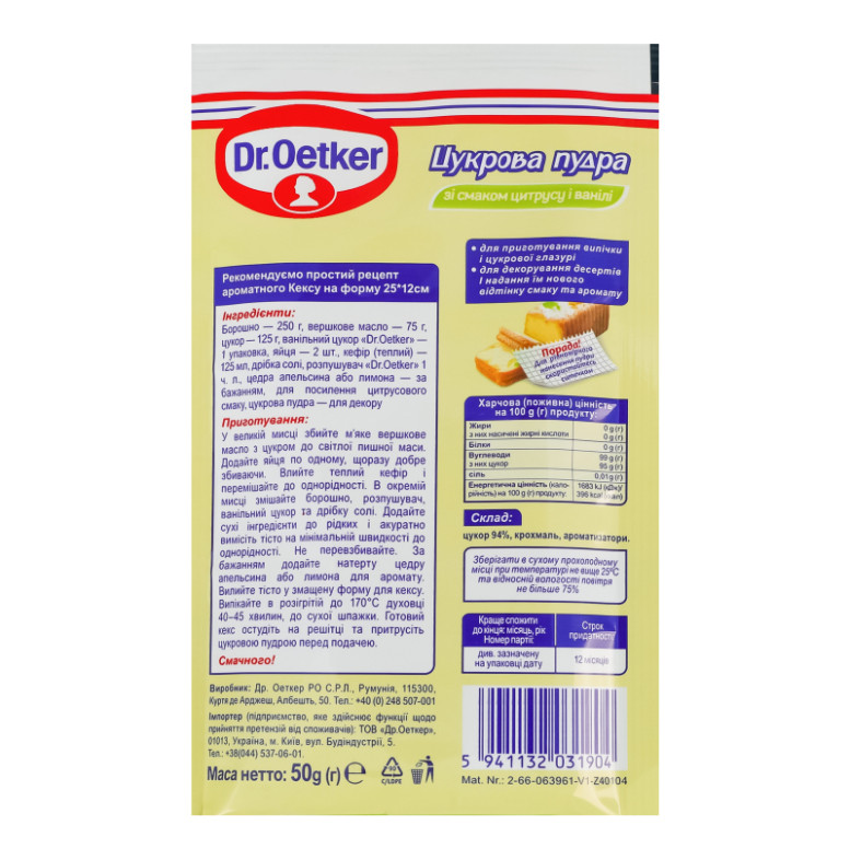 Пудра цукрова зі смаком цитрусу і ванілі Dr.Oetker м/у 50г