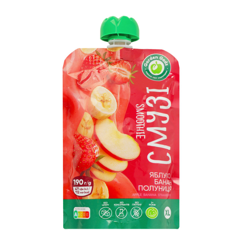 Пюре фруктове гомогенізоване стерилізоване Смузі яблуко-банан-полуниця Garden Gadz д/п 190г