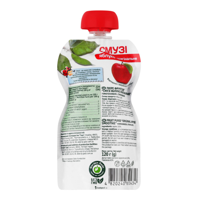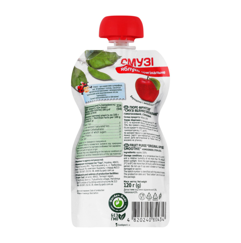 Пюре фруктове гомогенізоване стерилізоване Смузі яблуко оригінальне Garden Gadz д/п 120г