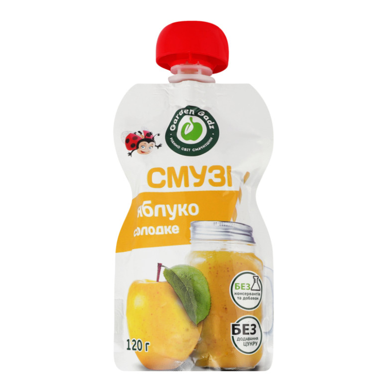 Пюре фруктове гомогенізоване стерилізоване Смузі яблуко солодке Garden Gadz д/п 120г