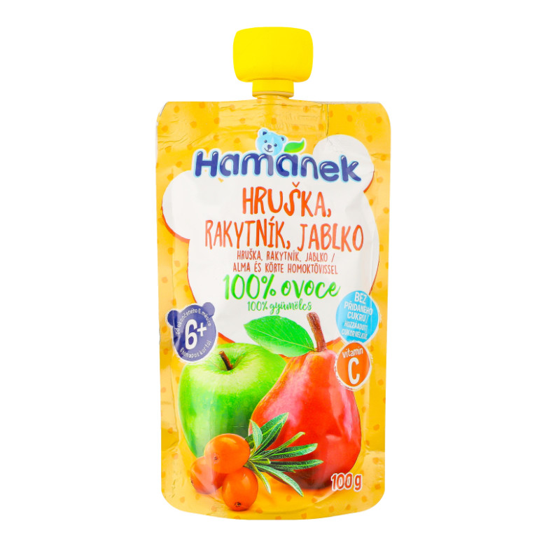 Пюре фруктово-ягідне для дітей від 6міс гомогенізоване Яблуко з грушею та обліпихою Hamanek д/п 100г