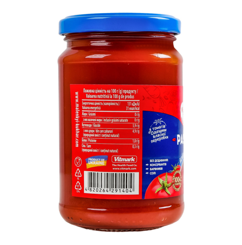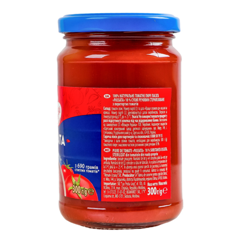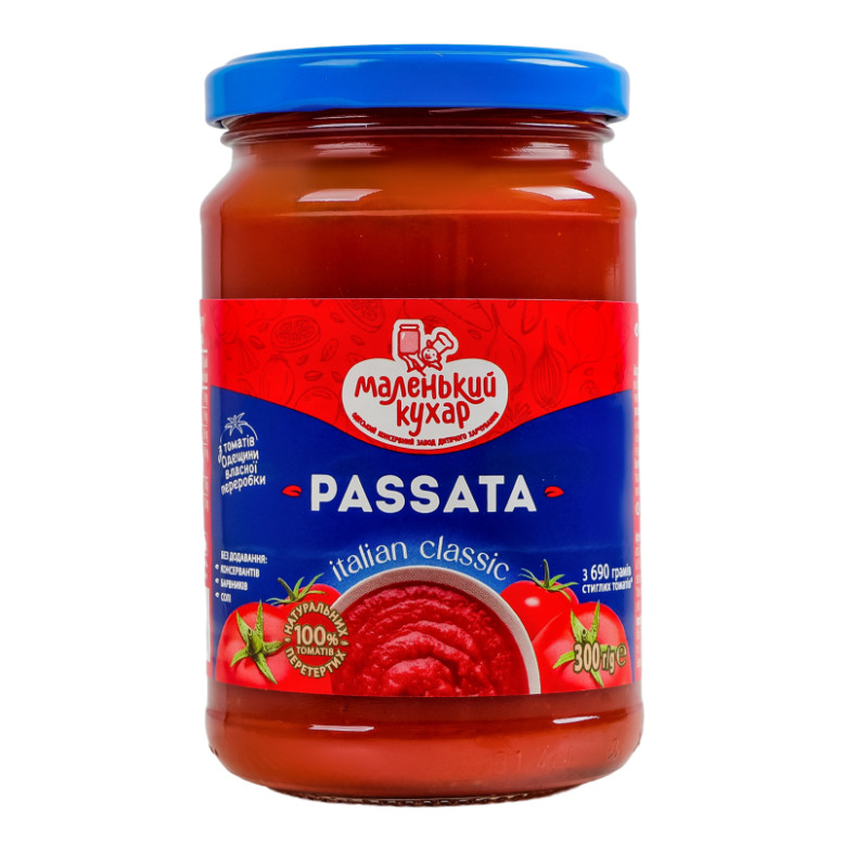Пюре томатне 10% натуральне стерилізоване з перетертих томатів Passata Маленький кухар с/б 300г