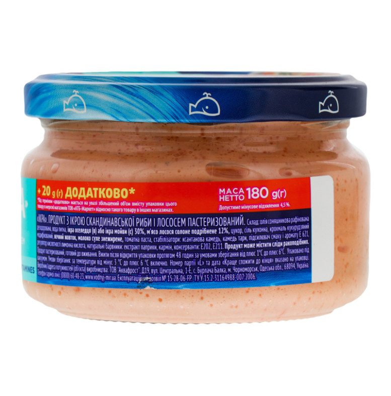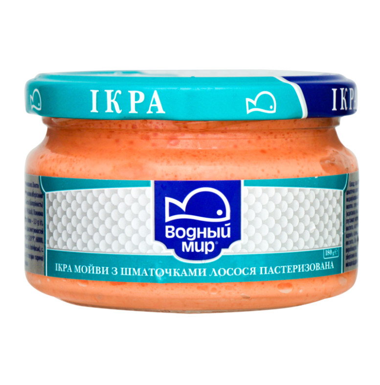 Продукт з ікрою скандинавської риби та лососем Ікра Водный мир с/б 180г