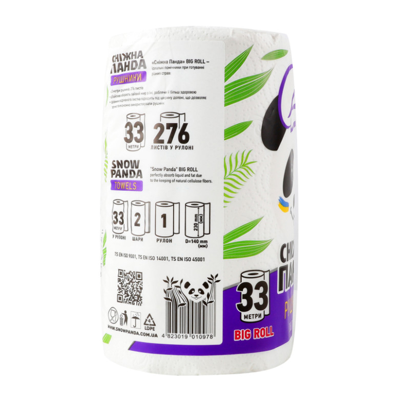 Рушники паперові 2-х шарові Big Roll Сніжна Панда 1шт
