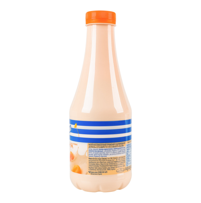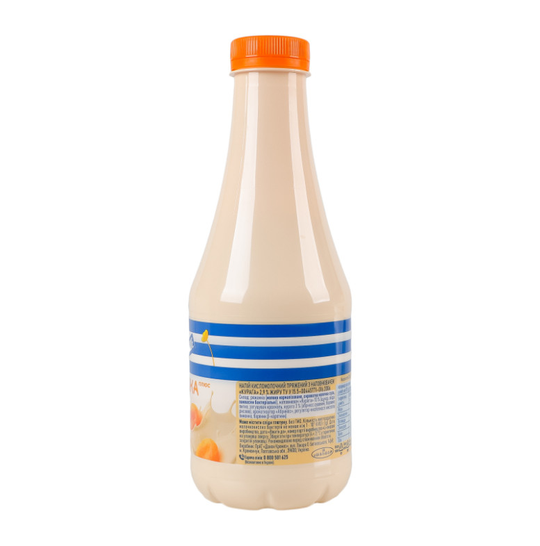 | Склад (укр.) | Ряжанка (молоко нормалізоване, сироватка молочна суха, закваски бактеріальні), наповнювач "Курага" 10% (цукор, вода питна, загущувач крохмаль, курага 3%, (абрикос сушений, борошно рисове), ароматизатор "Абрикос", регулятор кислотності кислота лимонна, барвник b-каротини) |