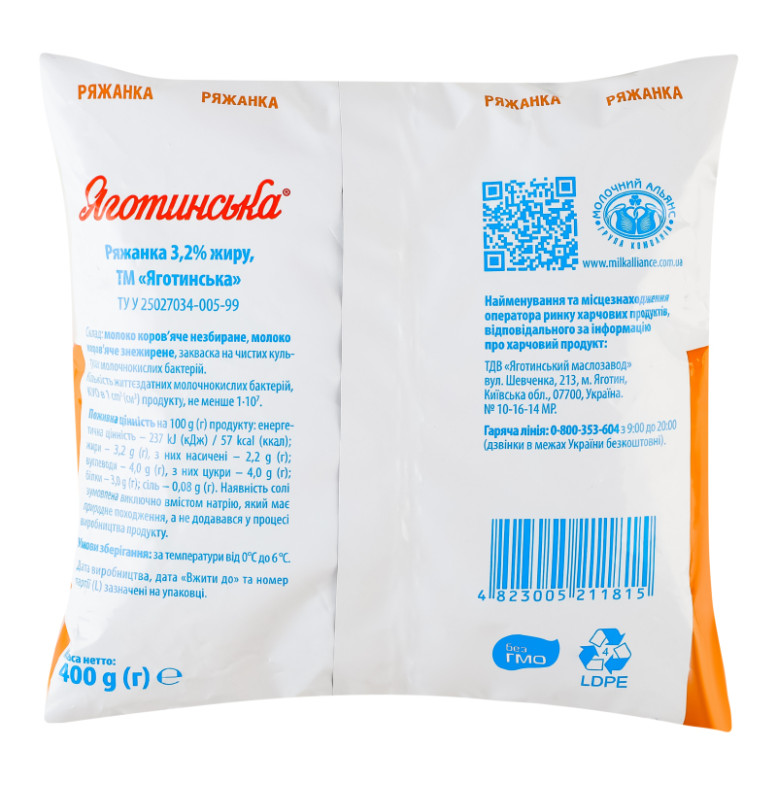 Склад (укр.) | Молоко коров'яче незбиране, молоко коров'яче знежирене, закваска на чистих культурах молочнокислих бактерій |