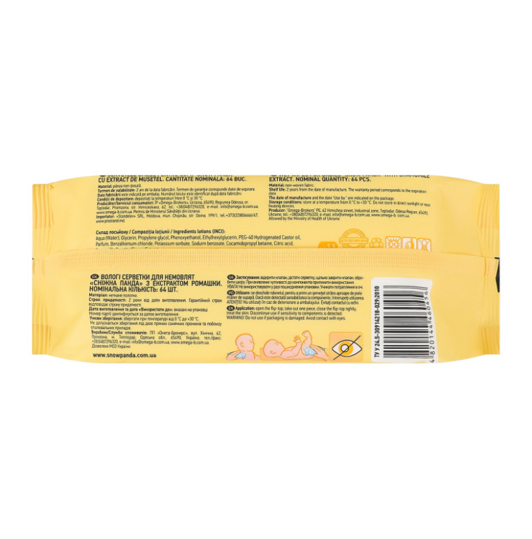 Серветки вологі для немовлят з екстрактом ромашки Сніжна панда 64шт