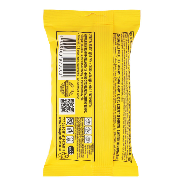 Серветки вологі для рук з екстрактом ромашки Kids Snow Panda 15шт