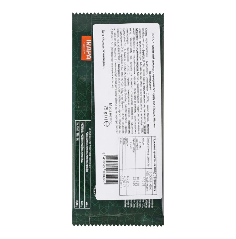 Шоколад молочний з фундуком без цукру Stevia Trapa м/у 75г