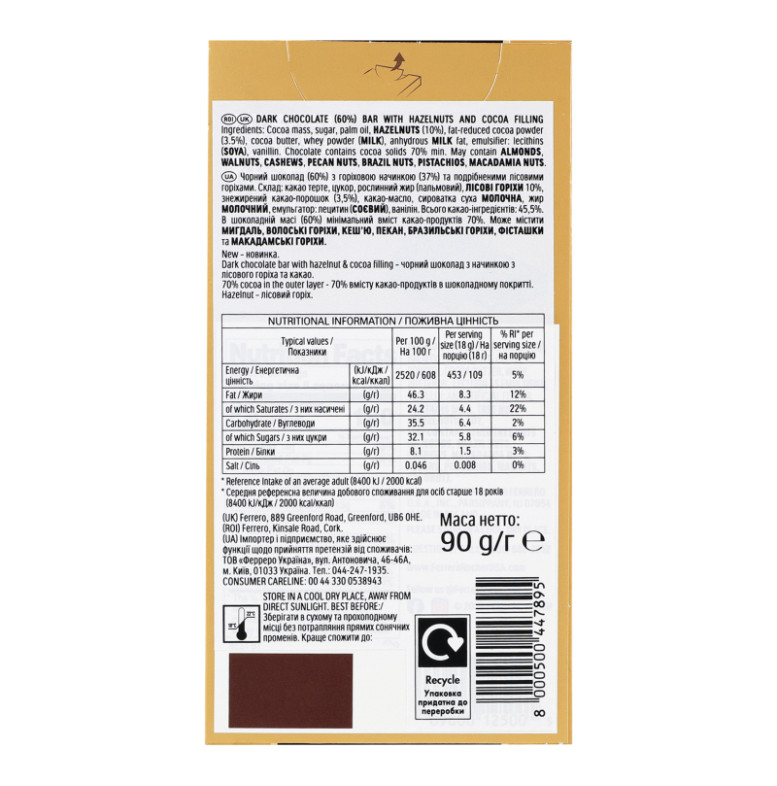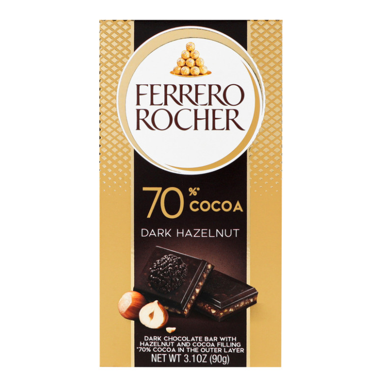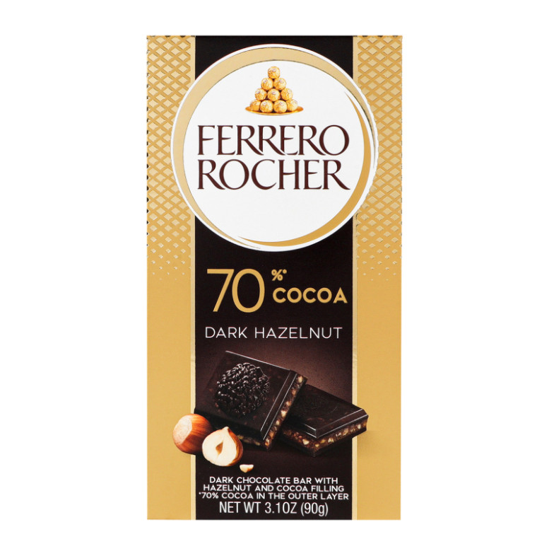 Шоколад 70% чорний з горіховою начинкою та подрібненими лісовими горіхами Ferrero Rocher к/у 90г