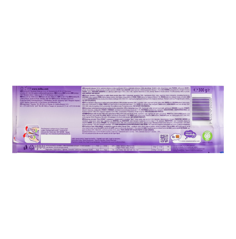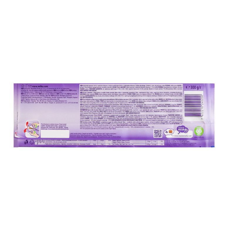 Склад: Цукор, жири рослинні (олія пальмова, пальмоядрова), борошно пшеничне, молоко сухе знежирене, какао-масло, какао терте, сироватка суха молочна, жир молочний, какао-порошок зі зниженим вмістом жиру (1.1%), крохмаль пшеничний, сироп глюкозний, емульгатор (лецитин соєвий), паста горіхова (фундук), сіль, розпушувачі (E501, E500, Е503), регулятор кислотності (Е524), ароматизатори