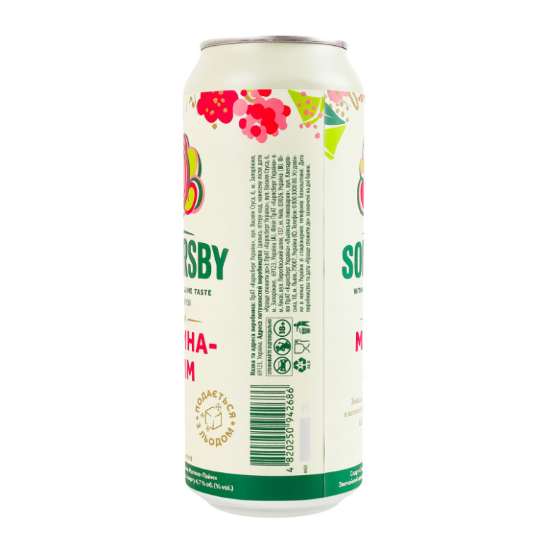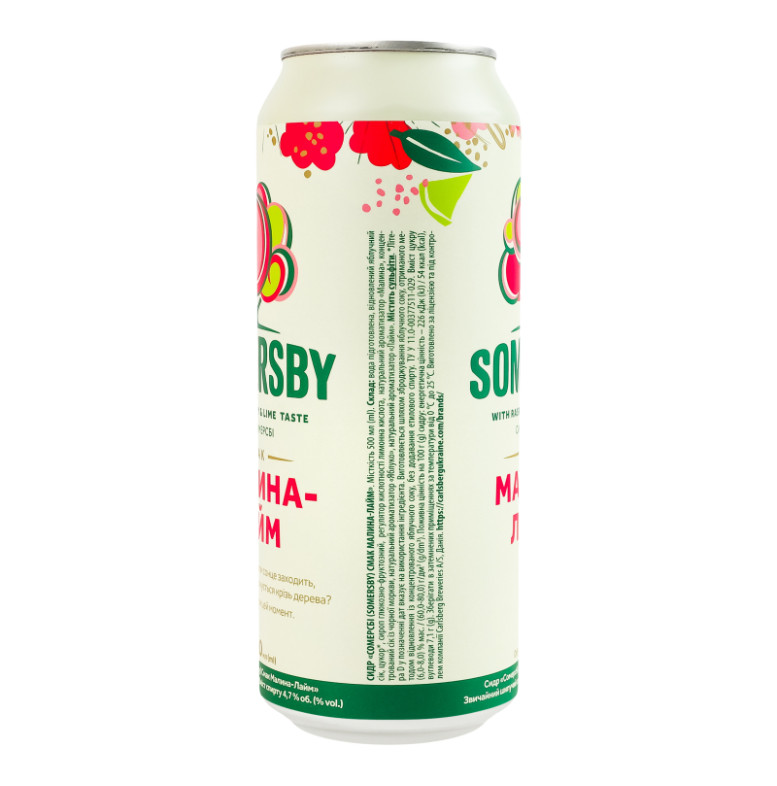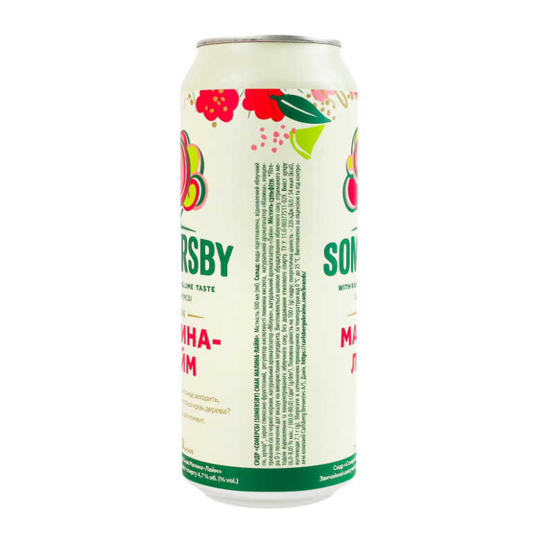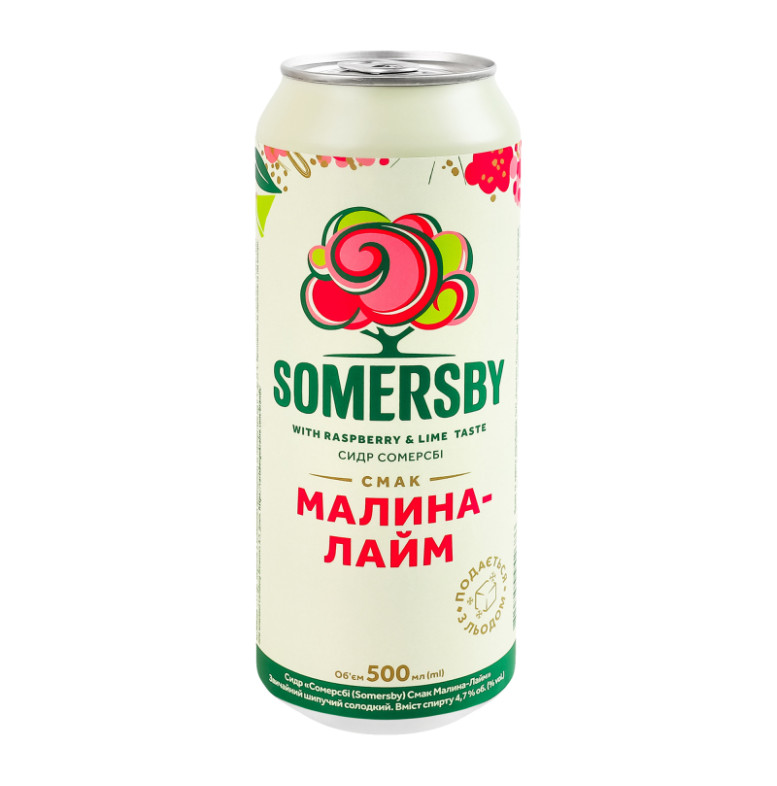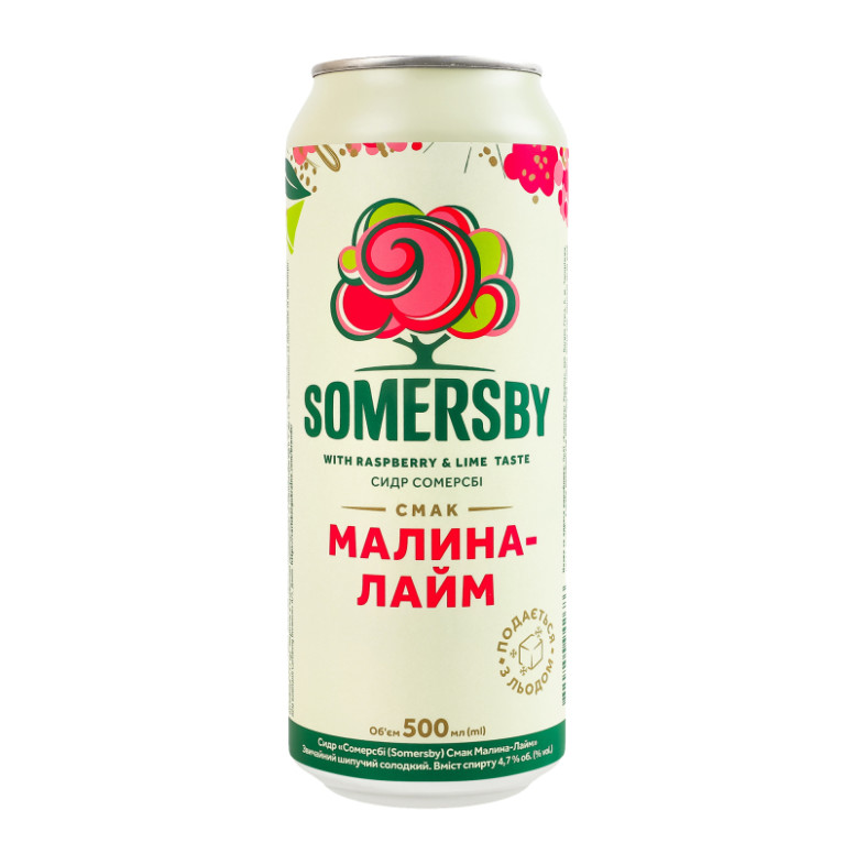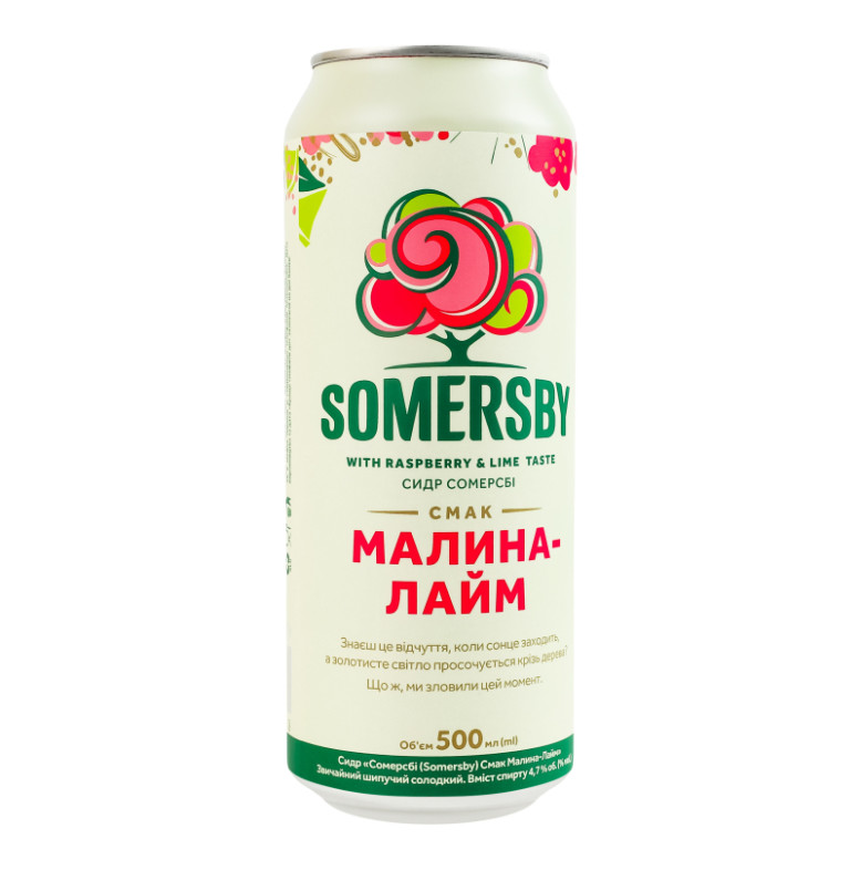 Сидр 500мл 4.7% солодкий шипучий звичайний Малина-лайм Somersby з/б