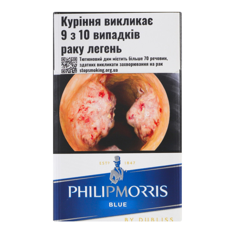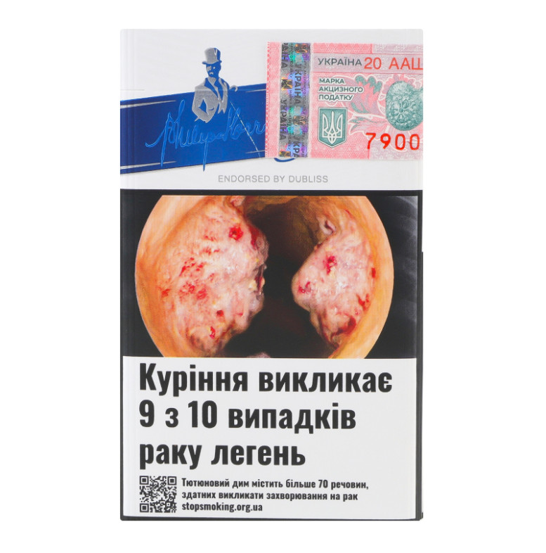 | Застереження/міри безпеки (ua) | Куріння викликає 9 з 10 випадків раку легень. Тютюновий дим містить більше 70 речовин, здатних викликати захворювання на рак. Куріння вбиває - кидай курити зараз |