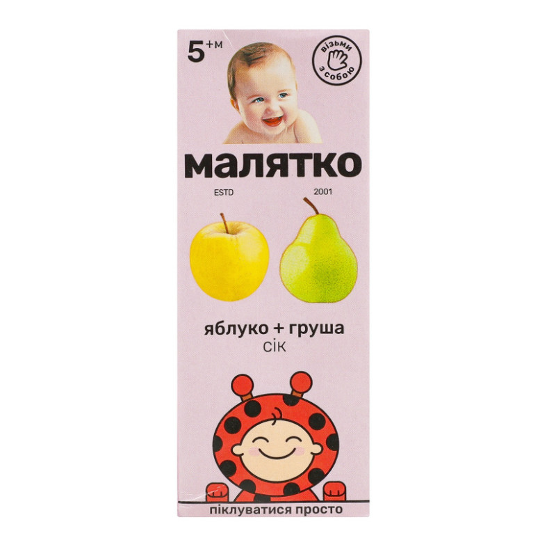 Сік для дітей від 5міс Яблуко-груша Малятко т/п 200мл