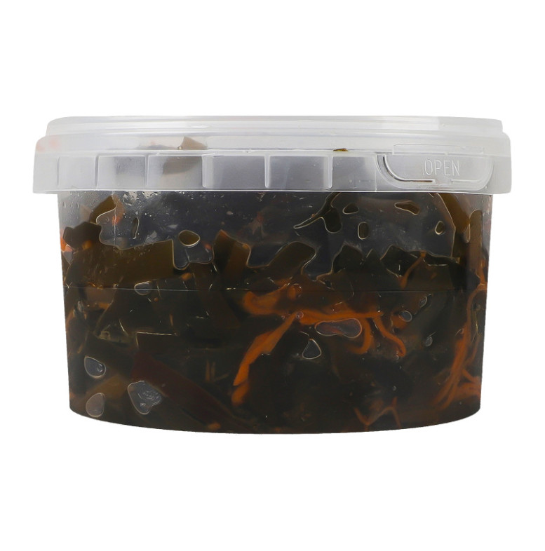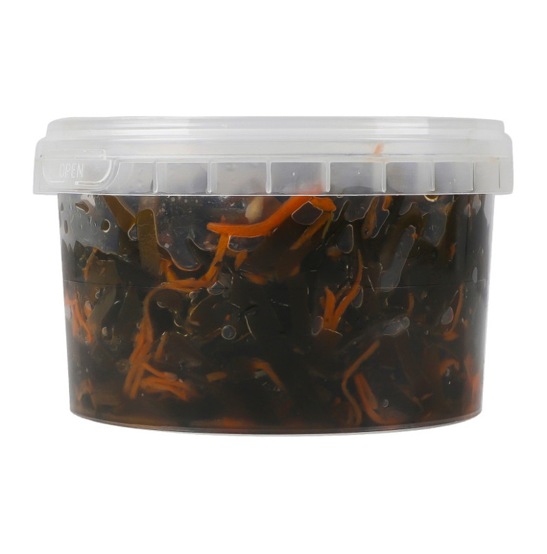 | Склад (укр.) | Капуста морська варена, морква - 15%, цукор кристалічний, олія соняшникова, часник, цибуля пасерована, соєвий соус, перець чорний мелений, оцтова кислота, підсилювач смаку глютамат натрію, консерванти бензоат натрію, сорбат калію |