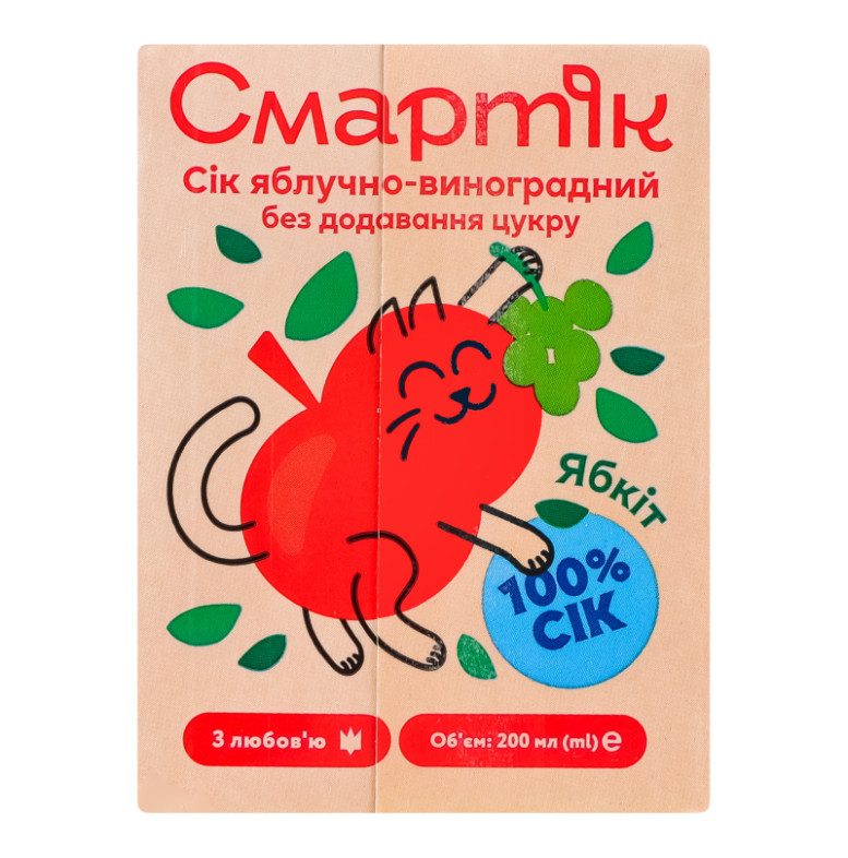Сік відновлений освітлений та пастеризований яблучно-виноградний Смартік т/п 200мл