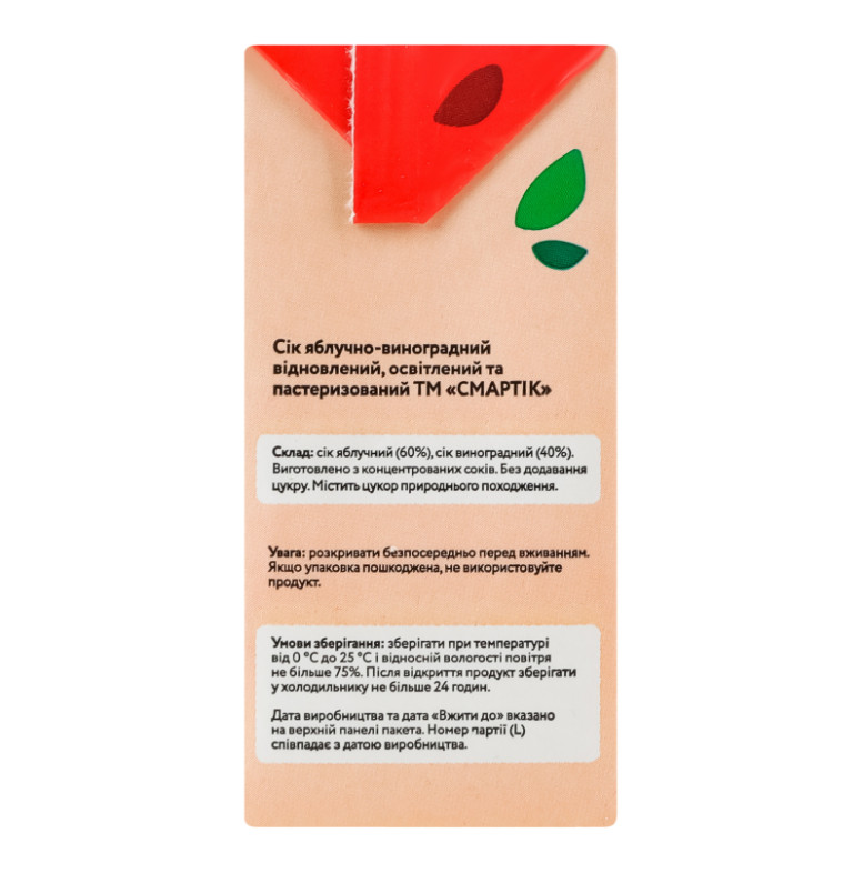 Склад: Сік яблучний (60%), сік виноградний (40%)