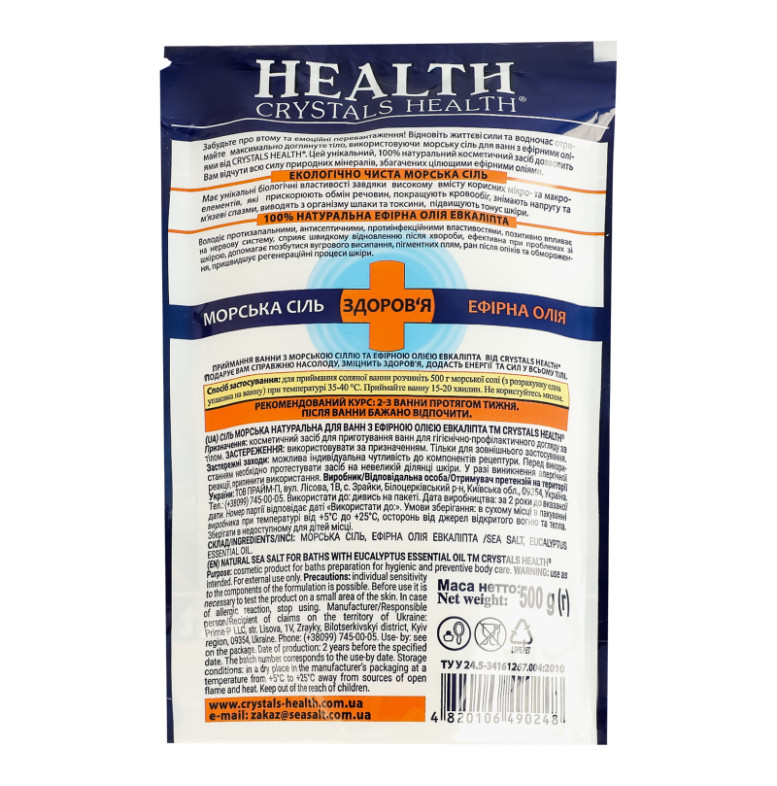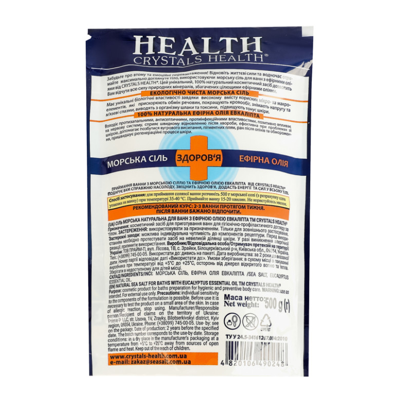 Сіль для ванн морська натуральна з ефірною олією евкаліпта Crystals Health 500г