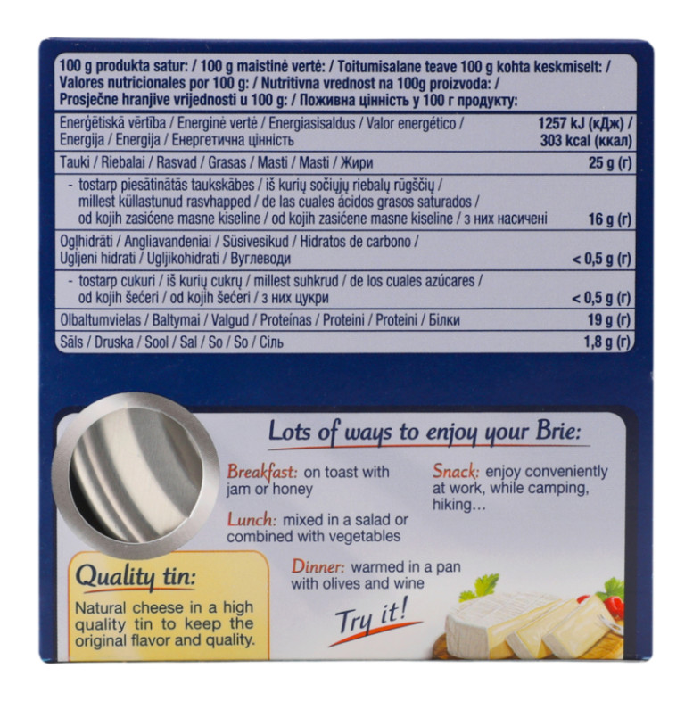 Склад: Пастеризоване молоко, сіль, мікробіологічний сичужний фермент, молочнокислі культури, культури для визрівання