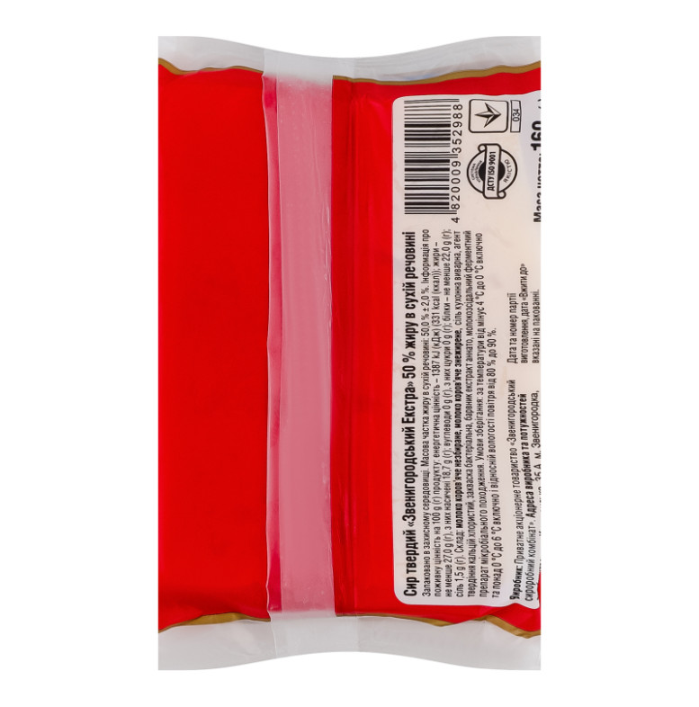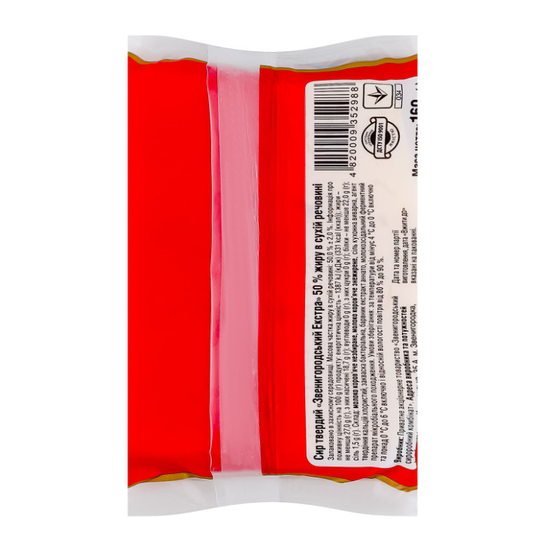 Сир 50% твердий Звенигородський Екстра Звени Гора м/у 160г