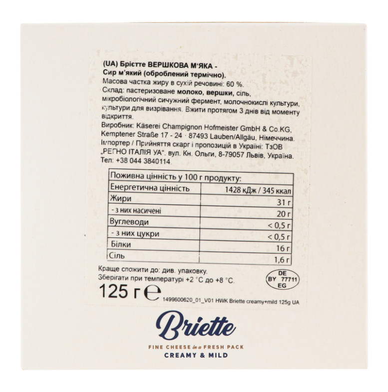 Сир Kaserei брієтте кремі майлд 60% 125г /Регно/