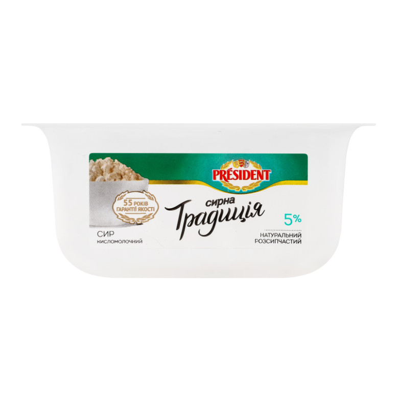 Сир кисломолочний 5% Творожна традиція President лоток 300г