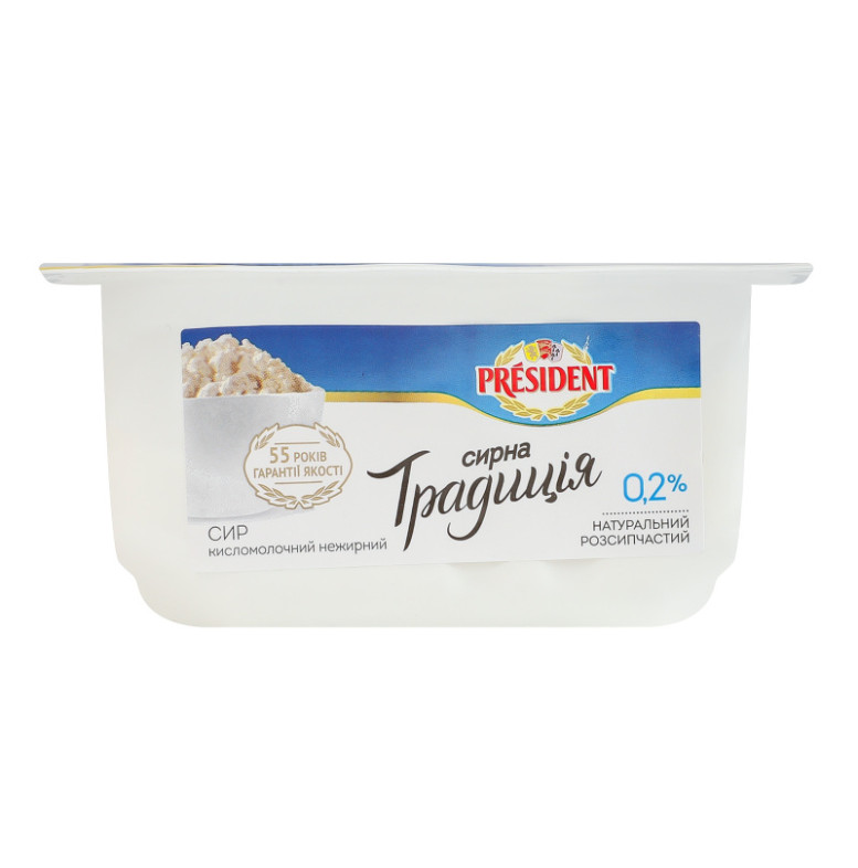 Сир кисломолочний 0.2% Творожна традиція President лоток 300г