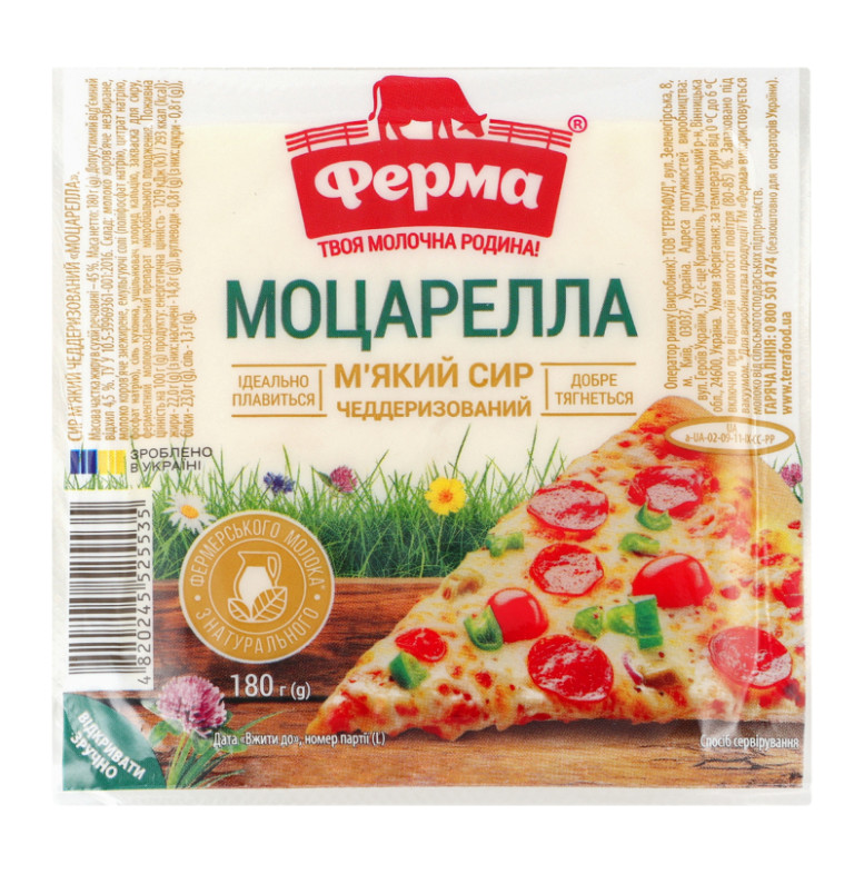 Сир 45% м'який чеддеризований Моцарелла Ферма в/у 180г