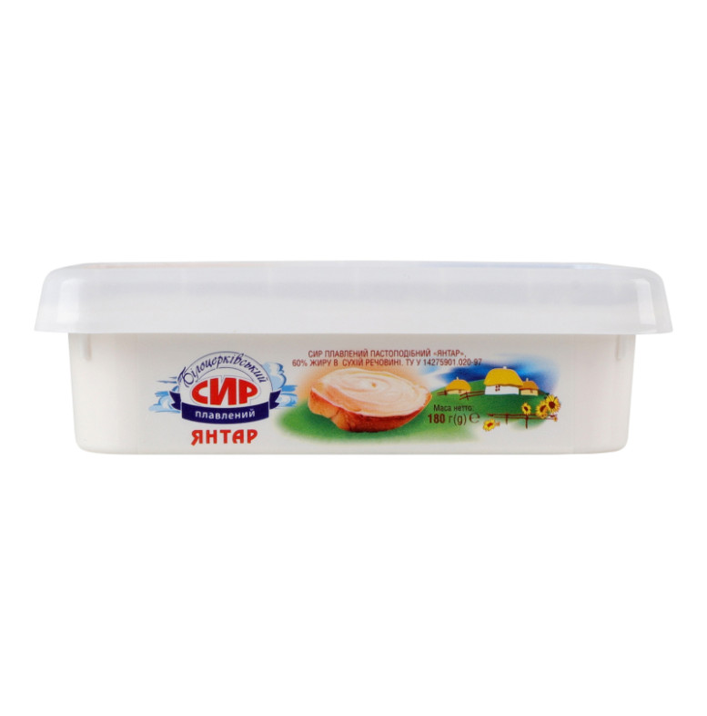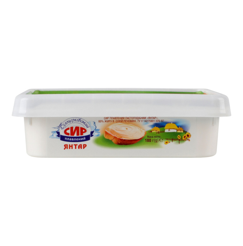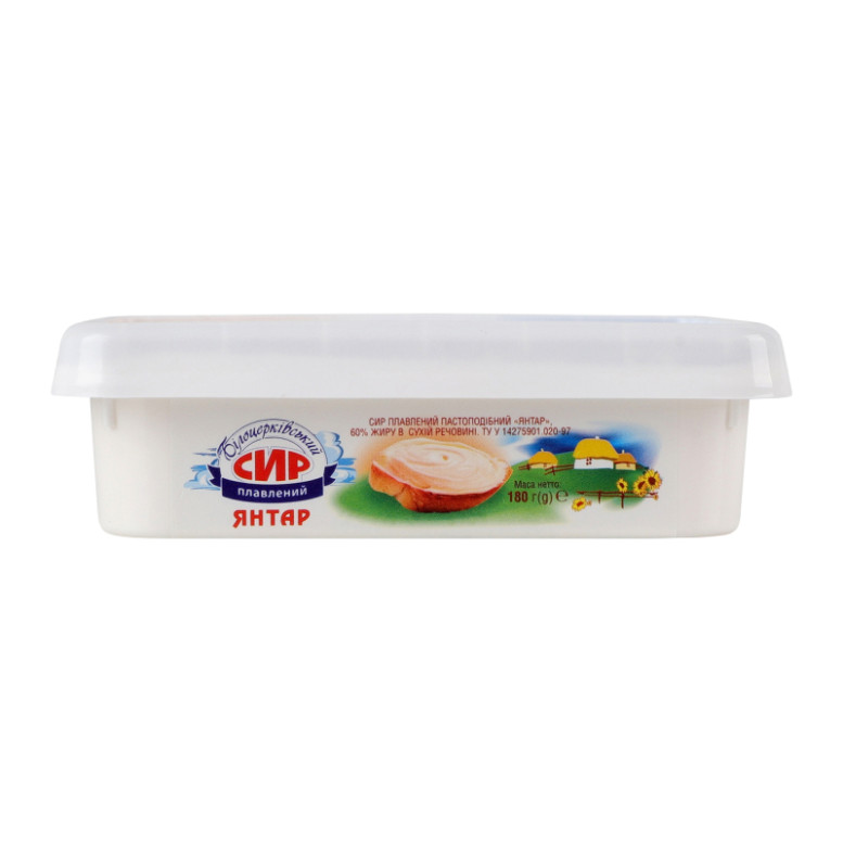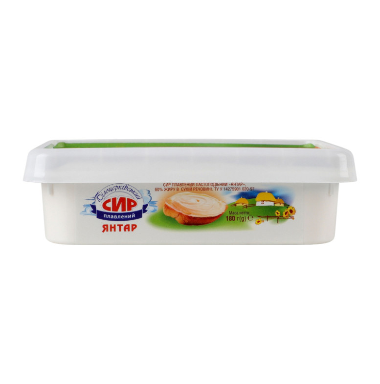 | Склад (укр.) | Вода питна, масло вершкове, сир жирний для плавлення, сир кисломолочний, підсирні вершки, сир нежирний для плавлення, сироватка молочна підсирна демінералізована суха, емульгуюча сіль триполіфосфат натрію харчовий, стабілізаційна система (камедь тари, ксантанова камедь, кукурудзяний крохмаль), сіль кухонна, консервант сорбінова кислота |