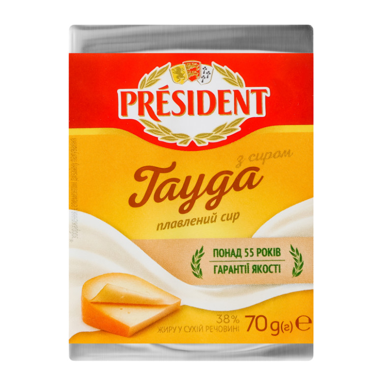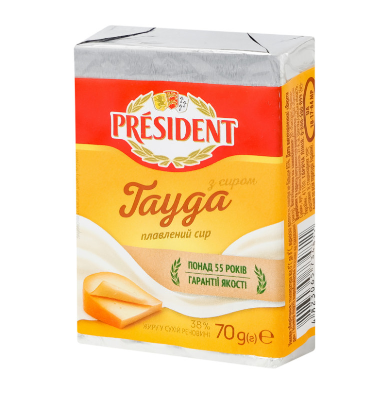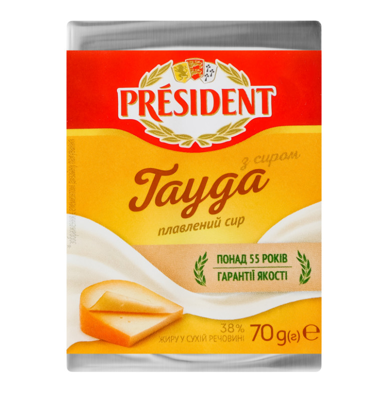 Сир плавлений 38% з сиром Гауда President м/у 70г