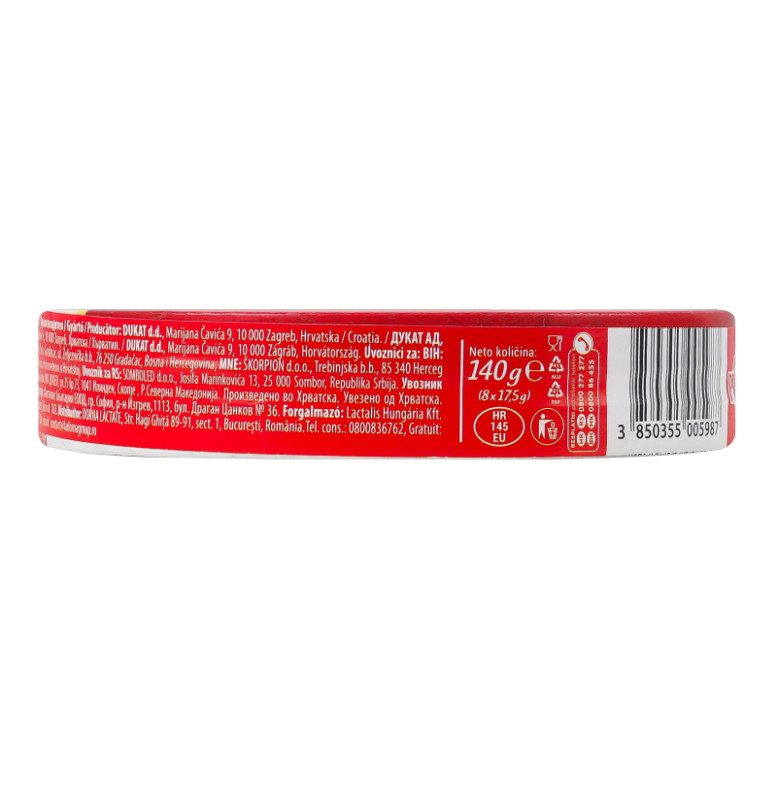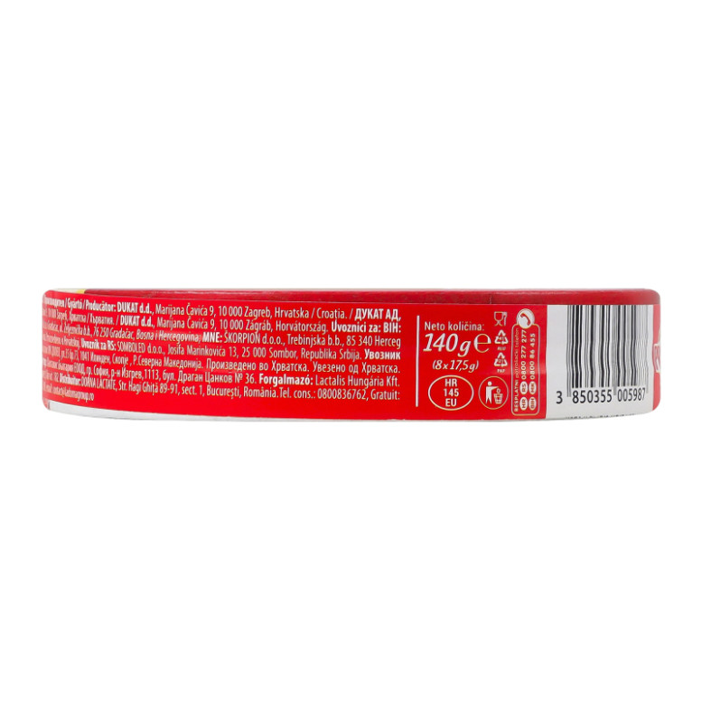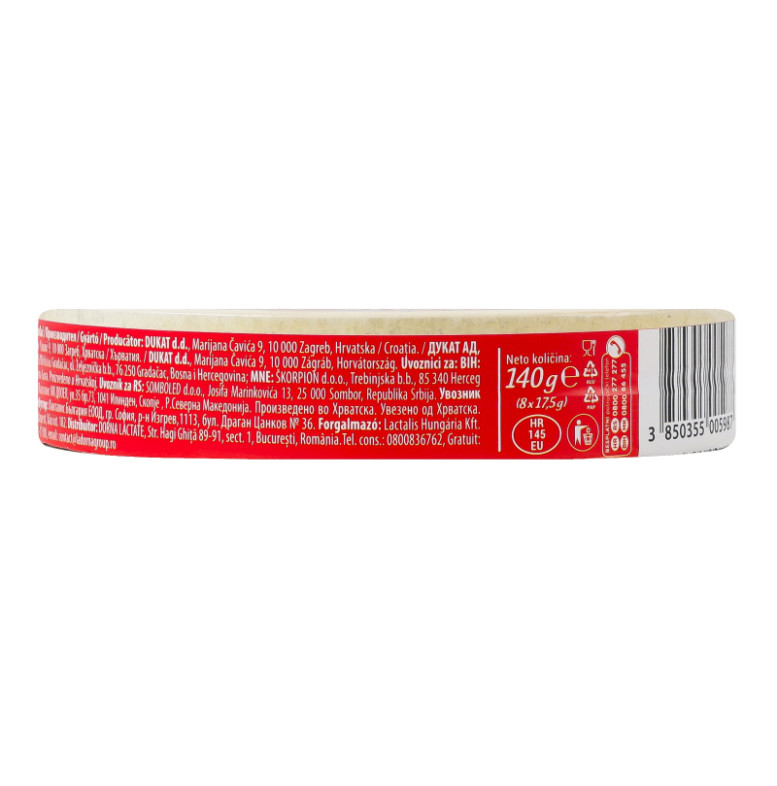Склад (укр.) | Сир твердий та сир напівтвердий (58%) (молоко пастеризоване, сіль кухонна, стабілізатор: хлорид кальцію, закваска бактеріальна, сичужний фермент, барвник: аннато, консервант: лізоцим (містить яйце)), вода питна, сироватка суха, сир свіжий, солі-плавителі: Е450, Е452, Е339, ароматизатор "Камамбер", консервант: нізин |