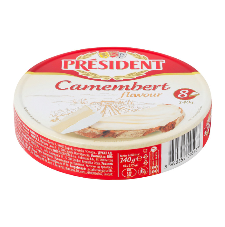Сир плавлений 35% порційний з ароматом Камамберу President к/у 8х17.5г