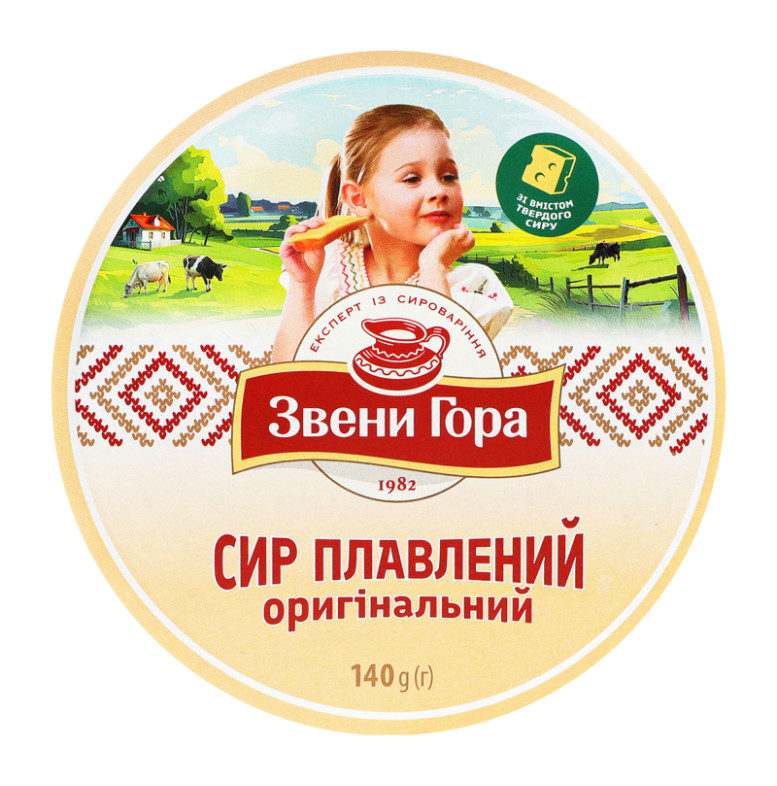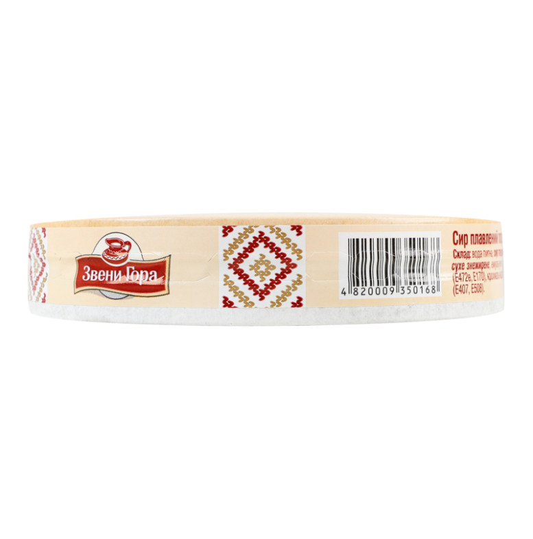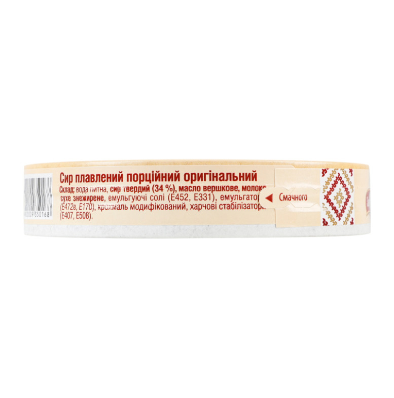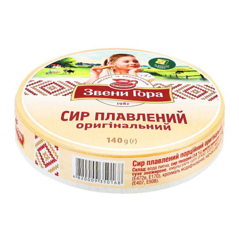 | Склад (укр.) | Вода питна, сир твердий (34%), масло вершкове, молоко сухе знежирене, емульгуючі солі (Е452, Е331), емульгатори (Е472е, Е170), крохмаль модифікований, харчові стабілізатори (Е407, Е508) |